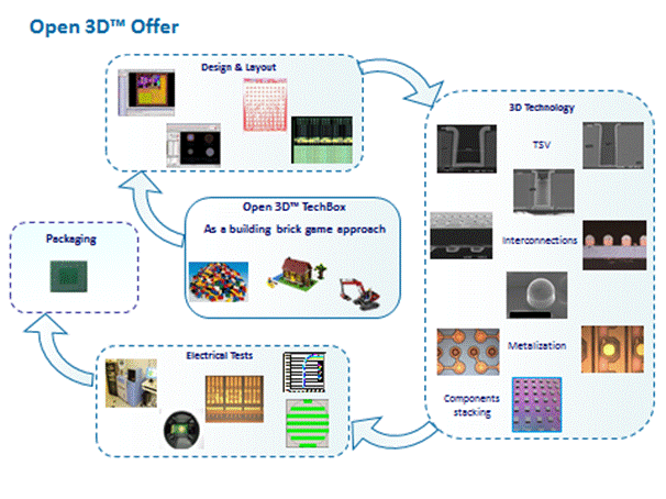 To help its partners solve key technology challenges, Leti's Open 3D™ global offer includes 3D design, layout, technologies including interconnections, TSV and components assembly, reliability tests and final packaging for components or systems achievement.