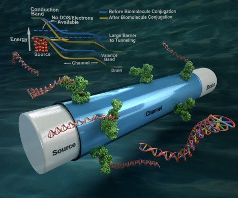"The thermionic emission current injection mechanism of conventional FET based biosensors puts fundamental limitations on their maximum sensitivity and minimum detection time," said Banerjee, who conceived the idea in 2009 while studying the design of tunnel-FETs for ultra energy-efficient integrated electronics.