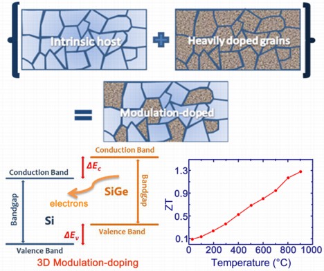 This work has been described in more detail in the paper, "Enhancement of Thermoelectric Properties Modulation-Doping in Silicon Germanium Alloy Nanocomposites" by Bo Yu et al, Nano Letters, 2012, 12 (4), pp 2077-2082. DOI: 10.1021/nl3003045.