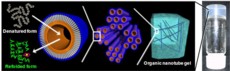 | Figure 1 : Refolding of a denatured protein to create a native protein using a nanochannel in the organic nanotube gel |