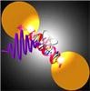 | © Busson, Rolly, Stout, Bonod, Bidault Schematic representation of a nanoantenna formed of two gold nanoparticles linked by a DNA double strand and supplied by a single quantum emitter. |