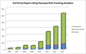 New applications aside, papers represent development effort. Warren adds "reflect for a moment on hundreds of research groups' writing papers. In 2013 this will represent tens of thousands of laboratory hours from PhD-level scientists, with their NanoSight work continuing to advance research and development." Warren concludes "The publication rate continues upward and, if current trends continue, 2013 will see papers reach the 1,000 mark. Now that will be a milestone to celebrate."