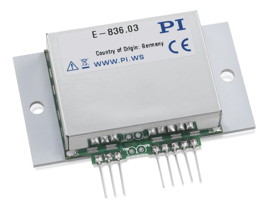 Despite its compact size, the new E-836.03 piezo driver provides for the dynamic operation of low-voltage multilayer piezo actuators and piezo positioning systems.