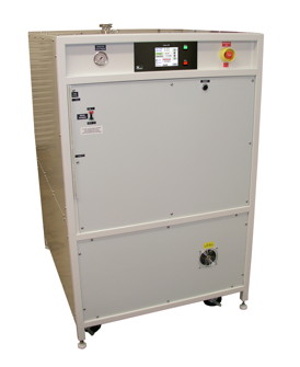 One chiller, model 1MP222W2, was capable of cooling 66 kW at 20°C. Utilizing a 25 horsepower compressor and recirculating heat transfer fluid at a flow rate of 110 GPM while under load, the chiller maintained fluid temperatures to within ±0.05°C about set-point.