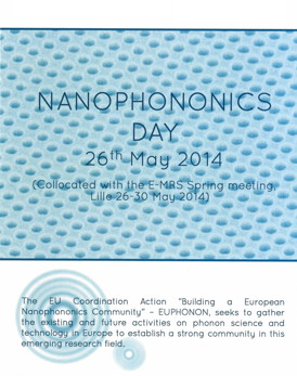 The Nanophononics Day is celebrated in May 26th 2014, collocated with Symposium D of the European Materials Research Society (E-MRS) Spring Meeting 2014 in Lille, entitled "Phonons and Fluctuation in Low Dimensional Structures" and with ICREA Prof Dr Clivia M Sotomayor Torres again among its organizers. It is probably the largest nanophononic event in Europe and a perfect context for a lively discussion about the most recent theoretical and experimental findings.