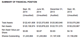 Harris & Harris Group, Inc. (Nasdaq:TINY), an investor in transformative companies enabled by disruptive science, reported today that, as of September 30, 2014, its net asset value and net asset value per share were $120,158,974 and $3.85, respectively. The firm has made significant new investments in new emerging areas of science. It has seen growth within its portfolio as its companies continue to execute in their respective industries.