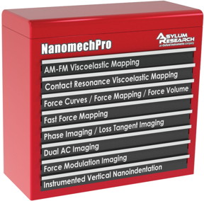As described in the application note, the NanomechPro Toolkit consists of both standard imaging modes that are included with every Asylum Research AFM as well as several optional techniques. The standard modes include force curves and force volume mapping, phase imaging, Bimodal Dual AC Imaging, and Loss Tangent Imaging. The optional modes include Fast Force Mapping Mode, instrumented vertical nanoindentation, force modulation imaging, AM-FM Viscoelastic Mapping Mode, and Contact Resonance Viscoelastic Mapping Mode.