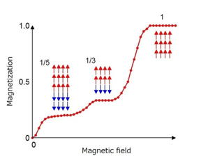 | The material exhibits distinct magnetization plateau connected with different spin configurations. |