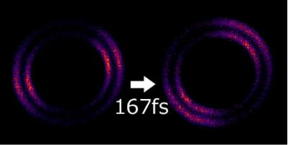 | Image 1: "Snapshots" of ultrafast rotating nitrogen molecules at a hundred billion per second (femtosecond = a quadrillionth part of one second). CREDIT: IMS/NINS |
