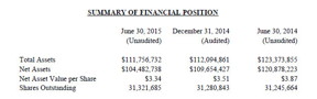 Harris & Harris Group, Inc. (Nasdaq: TINY) reported today that as of June 30, 2015, its net asset value and net asset value per share were $104,482,738 and $3.34, respectively. The Company also announced today that its Board of Directors has authorized the Company to repurchase shares of its outstanding common stock with an aggregate value of up to $2.5 million.