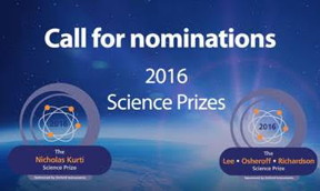 In its 11th year now, Oxford Instruments is pleased to announce the call for nominations for the 2016 Nicholas Kurti Science Prize for Europe and 2016 Lee Osheroff Richardson Science Prizes for North and South America.