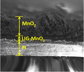 The researchers treated their LIG patterns -- interdigitated like folded hands -- with manganese dioxide, ferric oxyhydroxide or polyaniline through electrodeposition and turned the resulting composites into positive and negative electrodes. The composites could then be formed into solid-state microsupercapacitors with no need for current collectors, binders or separators.