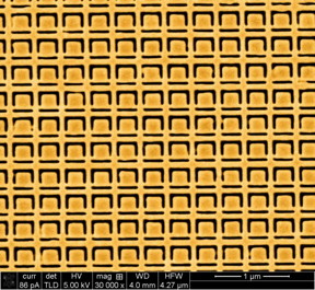 | This gold metamaterial nanostructure is a nanoscale version of the structure described by the University of Southampton researchers in Applied Physics Letters, and it exhibits large specular optical activity for oblique incidence illumination with light (rather than specular optical activity for microwaves). CREDIT: Eric Plum, Vassili A. Fedotov, and Nikolay I. Zheludev |