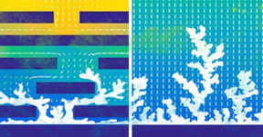 | Through simulations and experiments, the research team showed that a porous membrane stifled the formation of dendrites in lithium metal batteries. CREDIT University of Delaware/ Illustration by Joy Smoker |
