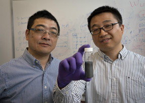 | Purdue researchers Wenzhuo Wu and Peide Ye recently discovered tellurene, a two-dimensional material they manufactured in a solution, that has what it takes to make high-speed electronics faster. CREDIT Purdue University image/Vincent Walter |