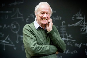 | Illinois physics professor and Nobel Laureate Anthony Leggett talks about the 1938 discovery of superfluidity and its significance to low-temperature physics. Photo by L. Brian Stauffer |