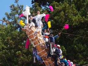 | The Onbashira Matsuri is a festival where men climb on and slide down a mountain side on large timber logs, a holy tradition dating back 1,200 years. The lumber is then used to build the one of the main shrines of Japan, the Suwa Taisha. CREDIT Copyright ©2012-2014 Suwa Tourism Association |