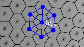 | Self-assembled dynamic lattice of spinners. The Voronoi diagram is overlaid with the observed lattice. The spinners are blurred because of the long exposure time that enabled precise identification of the rotational axes for all spinners. CREDIT Argonne National Laboratory |