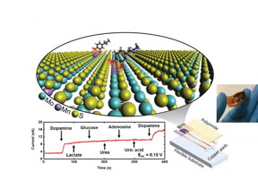 Their work shows that by adding a small amount of manganese to a two-dimensional layered material called molybdenum disulfide, they can improve the sensitivity by many orders of magnitude compared to other reported results, while also achieving high specificity. Importantly, their detector is low-cost and flexible, and can detect dopamine in background media including buffer, serum and sweat, and in real-time.