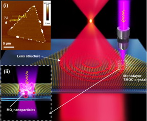In a new paper published in Light Science & Application, a team of scientists, led by Prof. Baohua Jia at Centre for Translational Atomaterials, Swinburne University of Technology, Australia, Prof. Qiaoliang Bao formerly at Monash University, Prof. Chengwei Qiu at National University of Singapore and co-workers have developed an innovative method to fabricate high performance lenses in monolayer two dimensional transitional metal dichalcogenide (TMDC) material by using a femtosecond laser to pattern nanoparticles. The lens has a sub-wavelength resolution and a focusing efficiency of 31%, laying the foundation for ultimately thin optical devices for use in nano-optics and on-chip photonic applications.