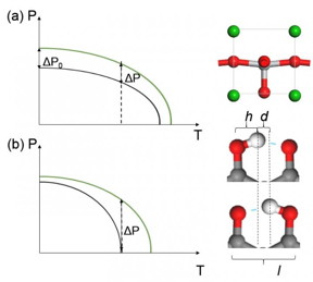 | The change of polarization upon a strain in (a) perovskite ferroelectrics and (b) HP ferroelectrics, where the black/green curve represent the dependence of polarization on temperature before/after a tensile strain is applied. Red, white and grey spheres denote O, H and C atoms respectively. CREDIT ©Science China Press |