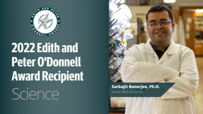 Dr. Banerjee will be recognized at the 2022 Edith and Peter O’Donnell Awards Ceremony on Wednesday, January 12, 2022 at 6:30 p.m. CT and will give a presentation on his research preceding the award ceremony at the TAMEST 2022 Annual Conference, Forward Texas – Imperatives for Health in San Antonio, Texas at the Westin Riverwalk Hotel.