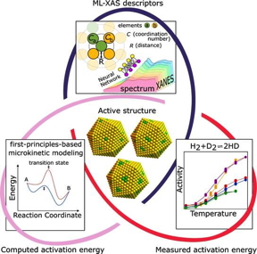 The researchers used x-ray spectroscopy and machine learning analysis to narrow down potential atomic structures, then used first principles calculations to model reactions based on those structures, finding the atomic structures that would result in the observed catalytic reaction.