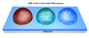 Quantum dots color conversion (QDCC) has become a foundational technology in the design of full-color light-emitting devices with dramatically improved color performance. However, conventional QDCC pixels fabricated by inkjet printing, that is commonly used, are still too thin to achieve efficient color conversion. A research team has developed perovskite quantum dots microarrays with strong potential for QDCC applications, including photonics integration, micro-LEDs, and near-field displays.