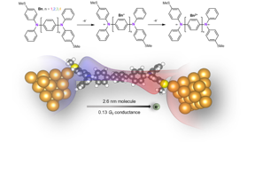 Columbia researchers announced today that they have built a nanowire that is 2.6 nanometers long, shows an unusual increase in conductance as the wire length increases, and has quasi-metallic properties. Its excellent conductivity holds great promise for the field of molecular electronics, enabling electronic devices to become even tinier. The study is published today in Nature Chemistry.
