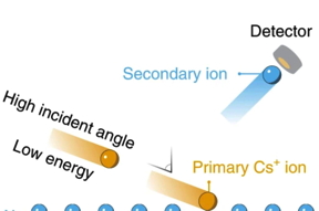 Secondary-ion mass spectrometry (SIMS) is a commonly used technique to study solid surfaces and thin films and how their chemistry changes with depth. It works by shooting a beam of charged particles at a sample, which bombards the atoms on the surface of the material and ejects them — a process called sputtering. The ejected ions are detected, collected and identified based on their mass and serve as indicators of the composition of the material.