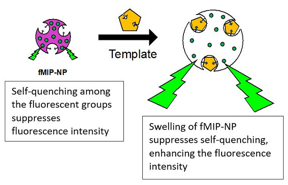 When the target neurotransmitters fit inside the cavity, the fMIP-NPs swell and get bigger. The researchers suggest that this increases the distance between the fluorescent monomers that, in turn, reduces their interactions, including self-quenching that suppresses fluorescence, with each other. As a result, the fluorescence intensity is enhanced, indicating the presence of the neurotransmitters. The researchers improved their selectivity of the detection by adjusting the neurotransmitter density on the surface of the glass beads during fMIP-NP synthesis.