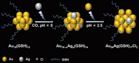 With this goal in mind, Yuan and collaborators found that seeding silver (Ag) ions could trigger the transformation from gold (Au)-based nanoclusters into alloy Au18-xAgx(GSH)14 nanocluster which can be further transformed to composition-fixed Au26Ag(GSH)17Cl2 nanoclusters by gold (Au) ions— with GSH denoting water-soluble glutathione. Moreover, the position of the single Ag atom of Au26Ag(GSH)17Cl2 nanoclusters could be identified on the surface.