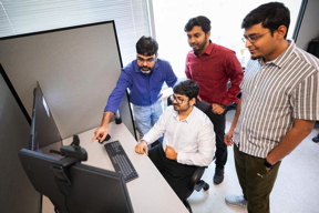 | Dr. Kanad Basu (left) and his colleagues developed a way to counteract the impact of attacks designed to disrupt artificial intelligence’s ability to make decisions or solve tasks in quantum computers. His team includes computer engineering doctoral students Sanjay Das, Navnil Choudhury (sitting) and Shamik Kundu (right). CREDIT The University of Texas at Dallas |