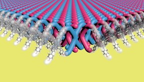 The resulting crystals comprise layers and layers of 2D interlocked polymer sheets. Within the polymer sheets, the ends of the X-shaped monomers are bonded to the ends of other X-shaped monomers. Then, more monomers are threaded through the gaps in between. Despite its rigid structure, the polymer is surprisingly flexible. Dichtel’s team also found that dissolving the polymer in solution caused the layers of interlocked monomers to peel off each other.