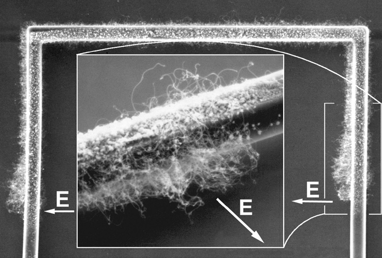 The experiments yielded silicon nanowires from 30 to 80 nanometers in diameter and up to 10 micrometers long, and carbon nanotubes that were 10 to 30 nanometers in diameter and up to 5 micrometers long.